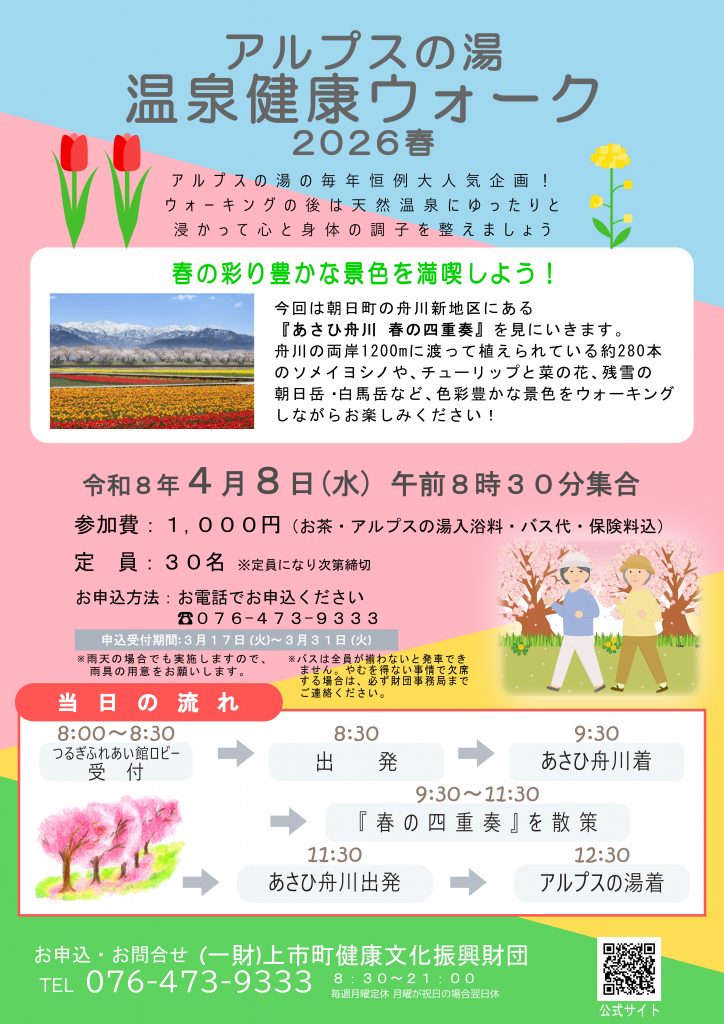(お茶・アルプスの湯入浴料・バス代・保険料込)